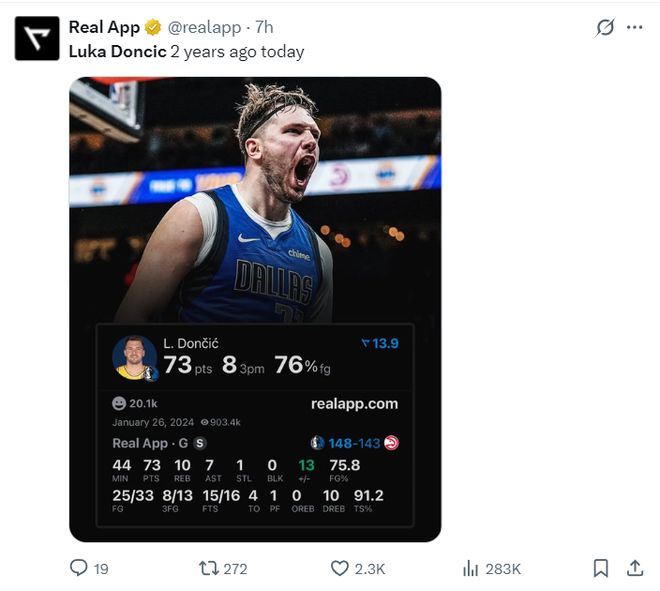 这场比赛也是东契奇的纪录之夜,两年前的今天东契奇对阵老鹰一战拿到73分10篮板7助攻1抢断,那是他拿到生涯最高分的一天。