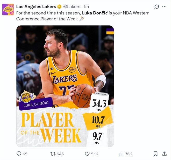 北京时间1月27日,卢卡-东契奇再度迎来里程碑,他65场比赛已经拿到2000分成为湖人队史最快的2000分先生。而且这场比赛东契奇第三节单节20分帮助湖人顶住了公牛的反扑,全场比赛拿到46+11+7+8三分的数据帮助湖人拿下胜利。