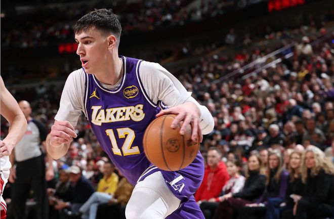 本场比赛中,湖人的先发锋线新星杰克-拉拉维亚(Jake LaRavia)的表现还算是中规中矩。拉拉维亚全场出场33分25秒,投篮6中3,三分线外4中2,得到了8分5篮板3助攻3抢断的数据,还有1次犯规,正负值为-9。拉拉维亚在本场比赛中并没有进行太多的出手,他的三分命中率倒是能够保持在一个不错的水平,而且他在传球和策应方面也是起到了一定的作用的。除此之外,拉拉维亚在防守端的态度也是值得肯定的,他在防守端付出了巨大的努力,耗费了不少精力,并且起到了不错的效果。拉拉维亚的正负值不太理想,但是这其实也和德安德烈-艾顿(DeAndre Ayron)的离谱状态密切相关。从拉拉维亚的角度来看,他已经做得足够好了,他也已经发挥出了自己的特点了。
