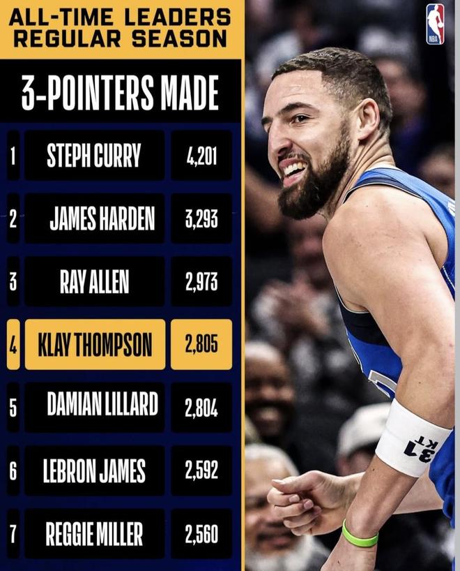 先把差距摆出来:这张图里库里生涯常规赛三分命中是4,201,哈登是3,293,两人目前相差908个。