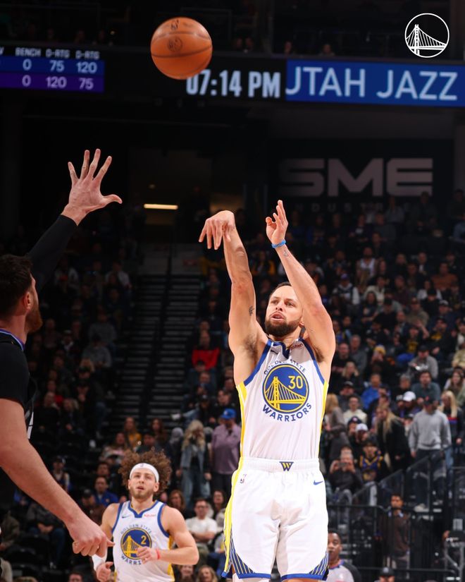 勇士队的库里得到27分,他超越皮尔斯升至历史得分榜第19位。穆迪得到26分和5个篮板,桑托斯得到16分和4次助攻,理查德得到13分和5个篮板,希尔德得到13分和4次助攻,梅尔顿得到12分,波杰姆斯基得到11分、8个篮板和7次助攻,普斯特得到10分和6个篮板。爵士队的森萨鲍夫得到22分,贝利得到19分和7个篮板,乔治得到19分、6个篮板和7次助攻,马尔卡宁得到18分,科里尔得到12分和6次助攻,菲利波维斯基得到12分,努尔基奇得到11分、5个篮板和5次助攻。