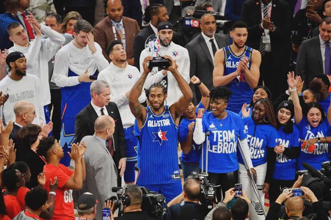 生涯至今,伦纳德一共6次入选全明星正赛,最近一次入选是2023-24赛季。他拿过一次全明星MVP:2020年NBA全明星赛。估计大家还有印象,那也是近几年最激烈的一次。2024-25赛季,伦纳德只打了37场常规赛,无缘全明星。