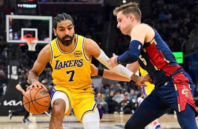 本场比赛中,湖人的替补后场大将盖布-文森特(Gabe Vincent)难得找到了自己的外线投篮手感,但是他的整体表现其实还是比较一般的。文森特全场出场24分31秒,投篮6中4,三分线外5中3,得到了11分3篮板1助攻的数据,还有2次失误和1次犯规,正负值为-12。文森特在进攻端出人意料地找到了手感,得到了两位数的分数。要知道11分已经是他本赛季的单场第二高得分了,他在进攻端的表现竟然已经远远超出了他自己的赛季平均水平。不过问题就在于,文森特除了命中了3个三分以外在其他方面的作用都非常有限,他其实并不是可靠的防守者,他并不能在防守端起到更大的作用,甚至因为身高不足经常被针对。不仅如此,作为一名后场球员他也是一点传球和组织能力都没有。总体来看,他的表现其实还是缺乏亮点的,他只是命中了3个三分而已。