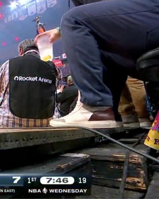当时有附近球迷拍到东契奇摔倒后的反应,这位湖人球星破口大骂:“这XX地板是哪个混蛋设计的?真见鬼!”随后,现场画面给出了地板的落差特写,确实会给球员带来伤病隐患。东契奇还是坚持打完全场,得到29分5篮板6助攻。