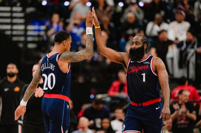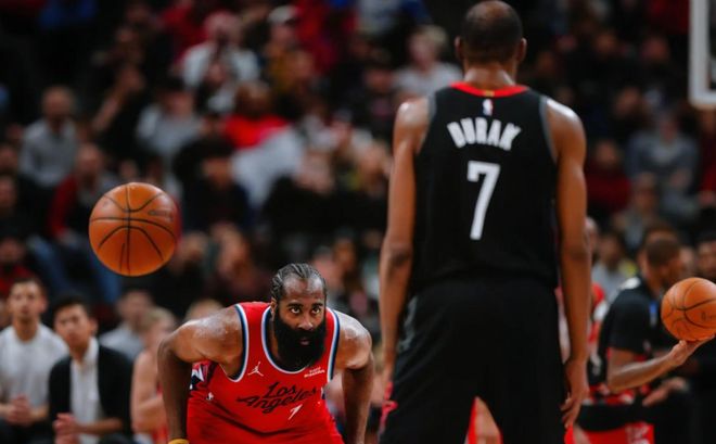 彼时,球队的进攻效率排在联盟第25位,防守效率更是低至第28位。屋漏偏逢连夜雨,球队首发后卫比尔因伤手术后赛季报销、功勋球星保罗和主帅泰伦卢闹掰直接被扫地出门,整个球队内忧外患,完全看不到任何希望。也因此,全世界都在质疑快船是不是要彻底解散开启重建之路了,甚至有美媒宣称“ 球队两大核心哈登和伦纳德已经被摆上货架,而伦纳德已经成为‘负资产’,要搭上首轮签或许才能送走!”