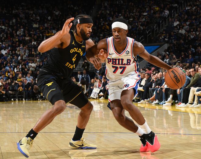 勇士主场迎战76人,76人是背靠背作战,体力不如休息了多日的勇士,76人方面恩比德、乔治缺阵,勇士方面库里、巴特勒、库明加缺阵,上半场比赛勇士还能和76人抗衡,半场战罢只落后3分,下半场76人优势明显,最终76人113-94大胜勇士。埃奇库姆20中11得到25分7板7助2断,马克西9中3得到14分4板3助2断、沃特福德13中7得到16分8板3助2帽。勇士方面斯潘塞8中5(三分4中3)得到13分5板3助、桑托斯7中5(三分5中3)得到13分2板3助2断2帽、穆迪8中4(全是三分)得到12分2板。