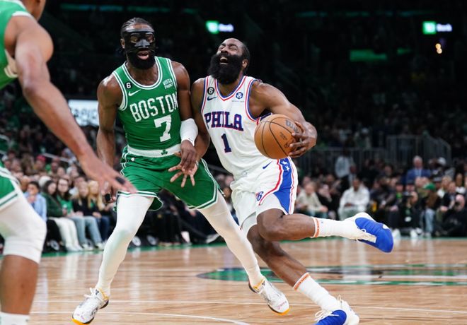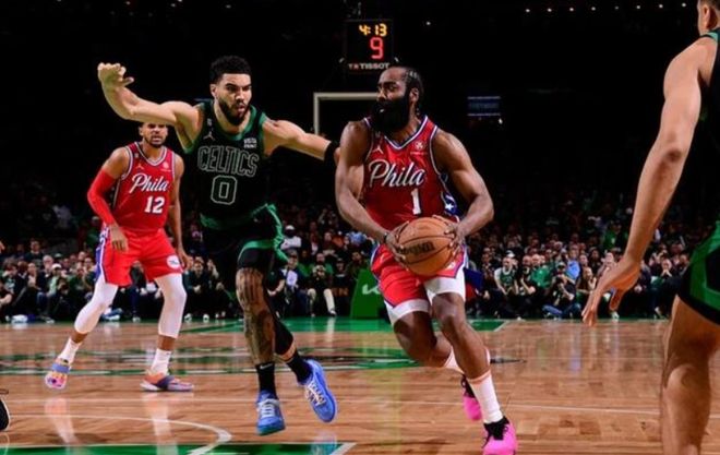 事实上,哈登当初在76人时,就曾在季后赛与凯尔特人相遇。届时,哈登面对凯尔特人打出了两场经典战役:一场42分加三分绝杀,一场45分加三分准绝杀。但这并不能掩盖哈登在最关键战役时的疲软,在这一系列赛最终的抢七大战中,哈登仅得9分,遗憾输掉了系列赛,让人惋惜。
