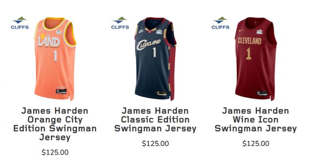 哈登等三位新援的球衣,目前在骑士官方商店里只有球迷版出售,定价是125美元,球员版尚未到货。通过交易离队的加兰、球哥的球衣已经在打折处理。比如球哥原价125美元的球迷版球衣,现在售价是62.99美元,加兰原价210美元的球员版球衣,现在的售价是99.99美元。