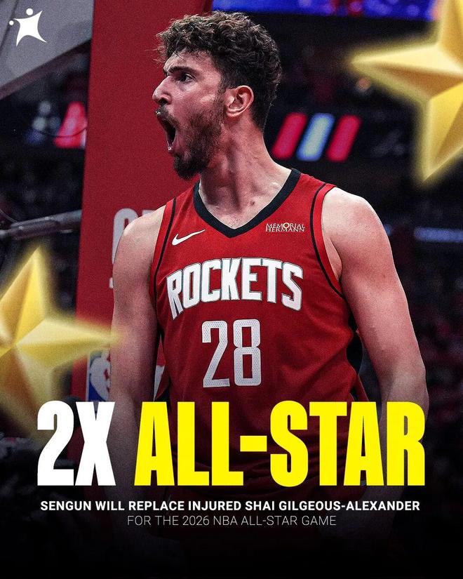 来自NBA的官宣,火箭中锋申京被NBA总裁萧华指定,递补入选2026年的全明星,他将顶替受伤退赛的亚历山大代表全明星世界队出战,这也是他生涯第二次入选全明星。