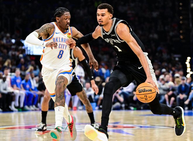 还有,打马刺+火箭+湖人三场比赛,都出现过一种现象:当雷霆处于落后局面时,只要冲击篮下,基本都能造成杀伤,1米93的伊塞亚乔都能让伊森无可奈何。简单来说,在雷霆,谁拿到球,谁基本锁定罚球红利大礼包。这可不仅仅是亚历山大的问题了,是雷霆全队,中大奖了!对手起势时,千万别往内线冲,裁判不会轻易给罚球。这也是马刺为什么能四杀雷霆的原因,因为面对雷霆时,马刺全员三分在线,逼迫雷霆扩大防守,撕扯开内线空间。雷霆本赛季场均24次罚球并不算多,但通过场上节奏,他们占尽优势。