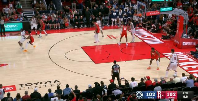 接下来火箭的进攻回合,则是直接把乌度卡按在地上揍了。同样的边线发球战术,全世界也都知道这球要给杜兰特。伦纳德紧贴杜兰特,虽然杜兰特通过申京的掩护甩开了伦纳德,但防守申京的小琼斯提前进行了换防,依旧死死挡住杜兰特,后者根本没有接球机会。