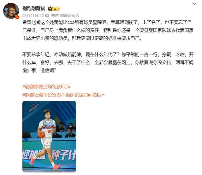 禁赛3场+罚5万!CBA重罚赵睿,网友直言罚的太轻,名嘴一针见血