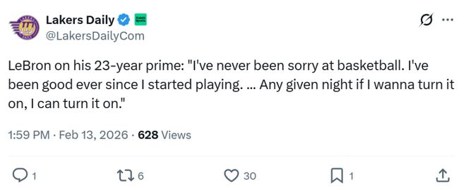 詹姆斯本人在狂刷历史之最的纪录后,赛后谈及自己漫长的巅峰期时霸气发声:“我从未因为选择篮球而后悔,自从打球以来,我一直很出色,只要我想火力全开,就能快速进入状态。”