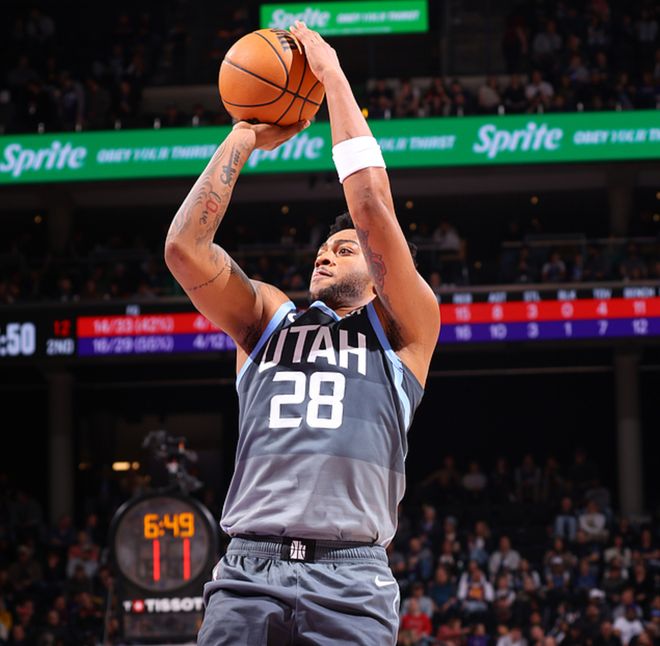 第二节比赛,克雷伊奇2+1追平分差,贝利、文威把分差扩大到4分,克林根、克雷伊奇、霍勒迪7-0反超3分,森萨博、科利尔6-0反超3分,卡马拉三分,科利尔、森萨博连得4分,爵士领先4分,暂停回来格兰特、亨德森5-0反超1分,贝利、森萨博、菲利7-0反超6分,暂停回来卡马拉、克林根、霍勒迪合砍10分,森萨博、科利尔、菲利合砍9分,爵士领先5分,卡马拉、霍勒迪合砍5分,菲利补篮,半场战罢爵士63-61领先。森萨博半场19分,霍勒迪16分