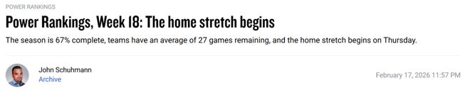 另外一方面也是赛季中期联盟迎来伤病潮,导致雷霆、掘金这些原本被更加看好的球队排名有所下滑。