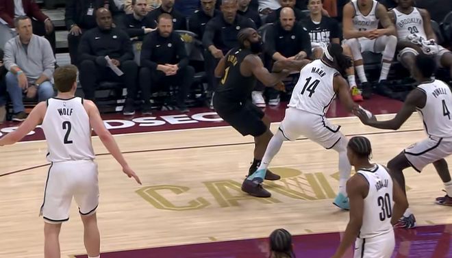 易边再战,哈登招牌撤步三分命中后再助米切尔追身三分,篮网下半场一分未得,骑士打出一波11-0领先到35分。哈登被吹进攻犯规示意挑战,骑士最多领先到43分,主帅阿特金森欣然应允,但最后失败了,这也是给面子了。哈登连续两个大空位接球三分不中,真是不难不进,三节打完砍下16分5篮板9助攻,骑士大比分102-67领先篮网。