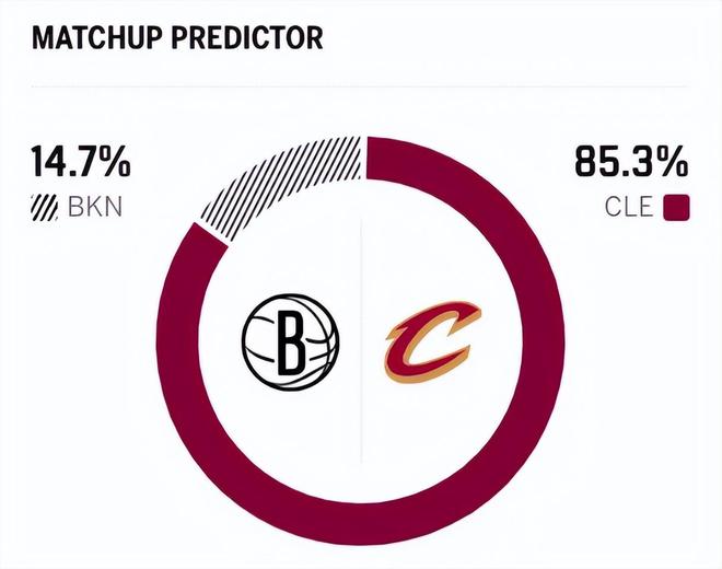 赛前,美媒ESPN对本场比赛进行了预测,骑士胜率高达85.7%,篮网胜率仅有14.3% ,差距同样明显。