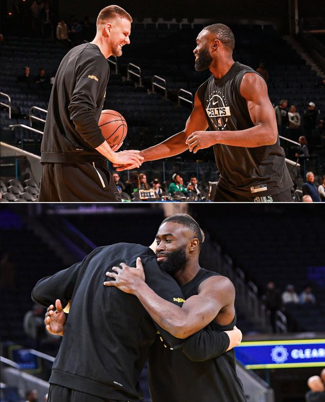 波尔津吉斯曾在23-24赛季跟随绿凯一同夺得NBA总冠军,随后被绿凯放弃,但他与队内很多球员都有着深厚的情感,赛前杰伦-布朗跟波尔津吉斯相谈甚欢,第二节波神获得登场机会,4中2+三分2中1拿到5分1篮板。