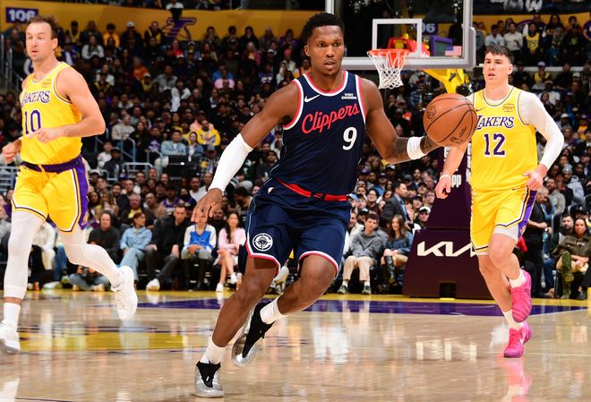 末节开场快船很快抹平分差,里夫斯关键三分命中,马瑟林打艾顿翻身中投命中,东契奇在篮下被帽,大洛三分命中完成反超,雷迪克暂停后斯玛特三分回应,莱昂纳德弧顶三分又回应,斯玛特再来一个2+0,东契奇三分命中快船暂停。暂停后小卡(左脚踝伤势)被泰伦卢换下,里夫斯制造一个进攻犯规,马瑟林6犯离场,东契奇2+1后琼斯回应三分,斯玛特抛投2+0,琼斯2+0回应,东契奇两罚命中,湖人失误但巴图姆三分不中比赛完结。