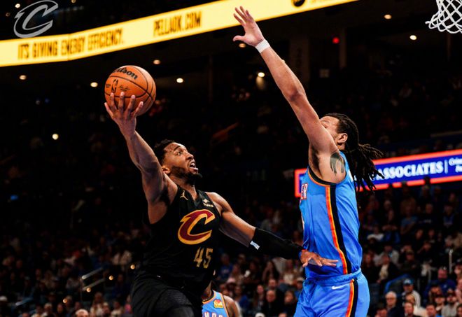 哈登20+9加盟首败!骑士无缘23分逆转雷霆结束7连胜 米切尔20+7