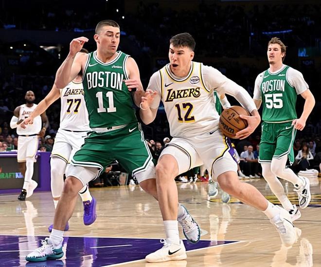 本场比赛中,湖人的替补锋线新星杰克-拉拉维亚(Jake LaRavia)的表现令人非常失望。拉拉维亚全场出场24分03秒,投篮2中2,得到了4分3篮板2助攻1抢断1盖帽的数据,还有1次失误和1次犯规,正负值为-18。拉拉维亚在进攻端还是没有什么突出的表现,他的自主得分能力比较有限,他在无球移动方面的能力也比较一般,他很难发挥出更大的作用,在进攻端的存在感严重不足。不仅如此,拉拉维亚在防守端的作用也同样非常有限,即使他显得非常积极,也想要在防守端起到更大的作用,但是实际情况是他确实是没有能力做到这一点。面对着实力强大的对手,拉拉维亚的能力似乎还是差了一些,确实是很难有所发挥。