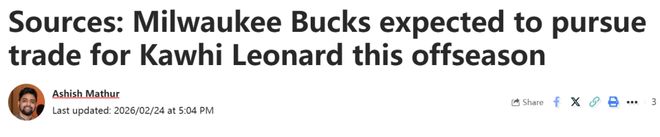 北京时间2月25日,据美媒Ahn Fire Digital消息源透露,密尔沃基雄鹿计划在今年休赛期推动交易,引进洛杉矶快船球星科怀-莱昂纳德。