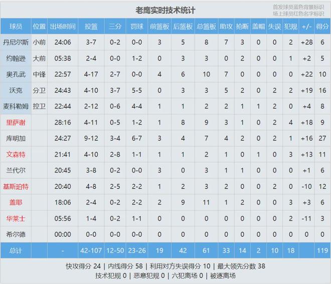 单场27分创造库明加本赛季个人新高,他也是本场唯一20+的球员!库明加第三节5投5中,单节狂砍18分2篮板1抢断。由于刚复出,打了不到25分钟,否则拿30+不成问题。能看出来库明加很开心,哪怕被换下场,都是满脸笑容。