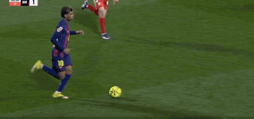 第16分钟,接到奥尔莫的传球,亚马尔停球相当舒服,快速突破形成单刀,但最后的射门却被门将扑了出来。