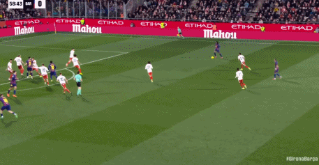 第23分钟,赫罗纳打出精彩配合,瓦纳特打门被没收
