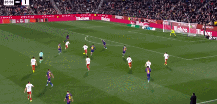 第34分钟,拉菲尼亚直塞,费尔明小角度打门踢飞