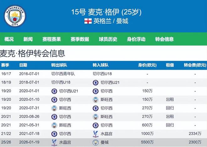 至报道称他“超过30万镑”的高薪,据Mail Sport披露,格伊的基础周薪实际上“显著低于30万镑”,另有与欧冠资格挂钩的浮动奖金。这个数字对于一名25岁的英格兰主力国脚来说,远非“溢价”。