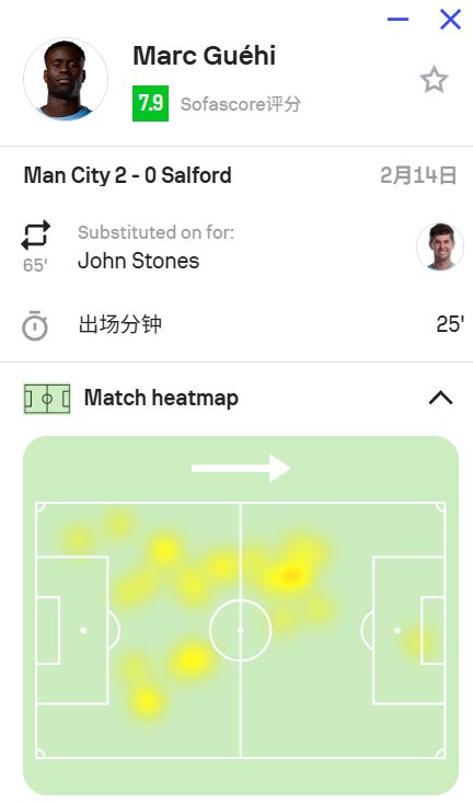 对阵富勒姆一役,他多次做出关键防守,身体素质和预判能力展现得淋漓尽致。而在刚刚结束的足总杯第四轮比赛中,轮换出场的格伊第81分钟补射破门,斩获曼城生涯处子球,帮助球队2-0锁定胜局。至此,他加盟曼城一个月,各项赛事出场5次,收获1球,球队保持不败。