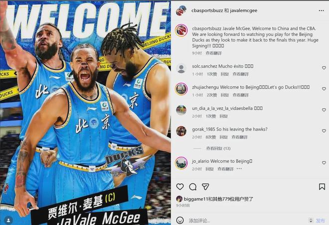 • 正式签约!湖人总冠军中锋!加盟北京男篮